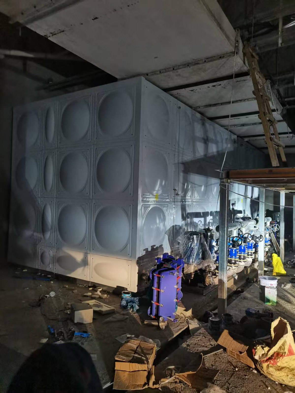 安裝地點:北京朝陽區天籟軒B座換熱站項目產品名稱:不銹鋼保溫水箱產品規格:7.5*4.5*4=135立方?產品數量:1臺供貨單位:山東省騰翔集團武城模壓制品有限公司????我司承接的北京朝陽區天籟...