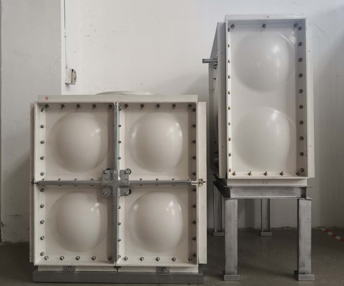 騰翔玻璃鋼水箱是用先進(jìn)的沖壓設(shè)備沖壓出來的高質(zhì)量玻璃鋼模塊組合而成,依據(jù)相對不同的三維結(jié)構(gòu)規(guī)劃參數(shù)來決議運(yùn)用不同厚度的模塊,在廠內(nèi)或現(xiàn)場實(shí)施焊接拼裝。玻璃鋼水箱組成的四個旁邊面及頂板都能夠由玻璃鋼模塊拼裝而成,主要來介紹下水箱底板、槽鋼結(jié)構(gòu)以及資料的選用,這些要素對整個水箱的形狀以及日后是否變形會有很大影響,因而要從水箱的規(guī)劃和裝置開始,要根底的穩(wěn)定性及水箱全體強(qiáng)度。