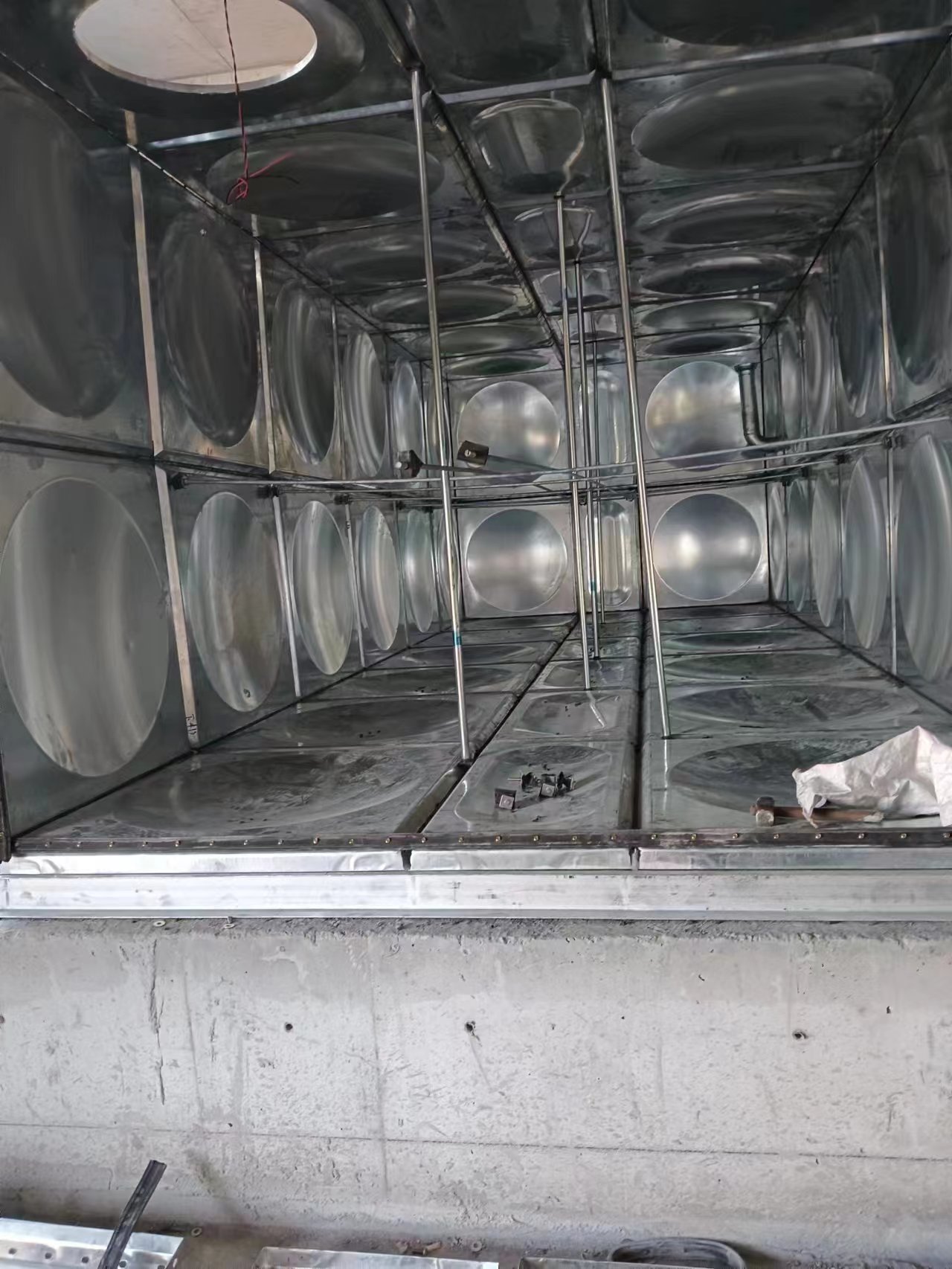 我司承接的山東淄博福源泰有限公司年產(chǎn)20萬(wàn)方新型高回彈聚氨酯新材料及智慧型寢具技改項(xiàng)目30立方鍍鋅鋼板保溫水箱已經(jīng)安裝試水完成。水箱位于室內(nèi),采用的是5公分橡塑鋁箔布保溫。