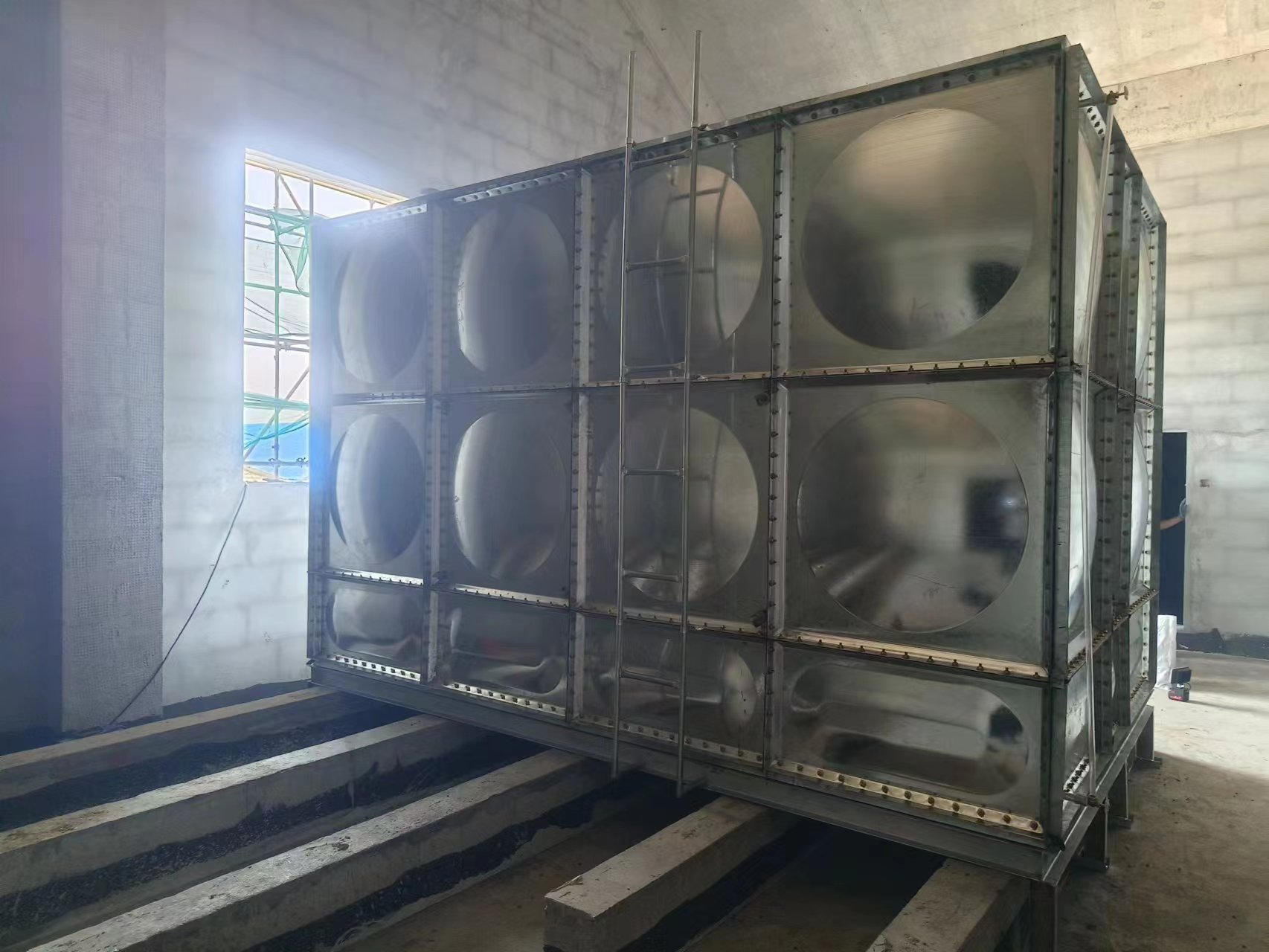 我司承接的河北省武邑縣高速服務(wù)區(qū)樓頂24立方鍍鋅鋼板消防水箱已經(jīng)安裝試水完成,此次水箱用做消防儲水使用。裝配式鍍鋅鋼板水箱是目前較為新型的水箱。該水箱制造、安裝不受土建施工影響,不用焊接設(shè)備,水箱表面采用熱鋅防腐處理,使水質(zhì)不受二次污染,并符合建筑產(chǎn)品標準化、系列化、工廠化要求。因其優(yōu)秀的抗氧化能力和較不銹鋼價格低的性能的越來越多的應(yīng)用到實際生活中。