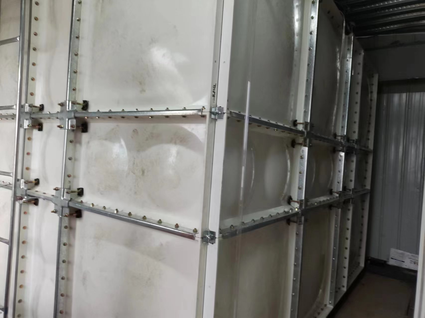 我司承接的山東省德州市平原縣紡興纖維廠地震災(zāi)后重建項(xiàng)目,21.9立方SMC玻璃鋼消防水箱已經(jīng)安裝試水完成。SMC組合式玻璃鋼水箱是一種普遍采用的儲(chǔ)水方式。是由SMC單元板現(xiàn)場(chǎng)組裝而成的一種水箱。單元板用SMC(sheet moulding compound)片材在高溫高壓下模壓成型,水箱內(nèi)采用加強(qiáng)式支撐,其鋼配件選用熱鍍鋅件和不銹鋼件均可。板塊厚度的選取依據(jù)板塊所受的壓力和所處的位置。有5mm、8mm、10mm、12mm、14mm、16mm等。