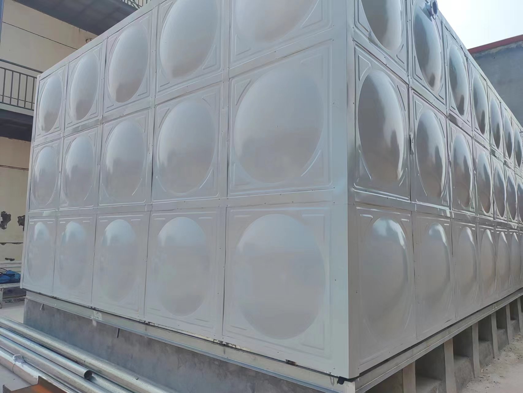 熱鍍鋅保溫水箱制造、安裝不受土建施工影響,不用焊接設備,表面采用鍍鋅防腐處理,美觀耐用,防止水質二次污染,,并符合建筑產品標準化、系列化、工廠化要求,鍍鋅水箱與裝配式搪瓷鋼板水箱相比,其箱體結構、選材、裝配方式完全相同,其差異在防腐方式不一樣。熱鍍鋅水箱經熱鍍鋅,使水箱板面形成致密鍍鋅層,與鋼板界面離子之間互相滲透,混合形成擴散層,加大了鍍鋅面的附著強度。鍍鋅面光滑,容易清洗,且耐腐蝕,鋼板組裝結構,不易變形、抗震性強、抗沖擊力大,通過長時間的使用,顯示出好的效果并得到用戶好評。
