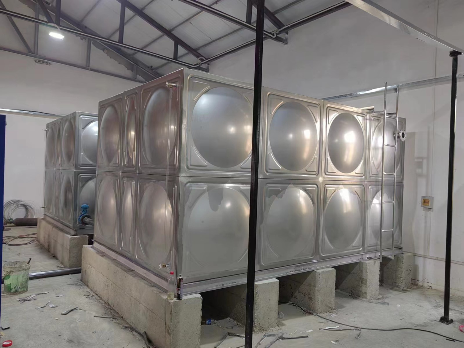 不銹鋼水箱施工方便快捷:標(biāo)準(zhǔn)沖壓板塊1000×1000、1000×500、500×500mm隨意裝配現(xiàn)場(chǎng)組裝焊接,無需吊裝設(shè)備。