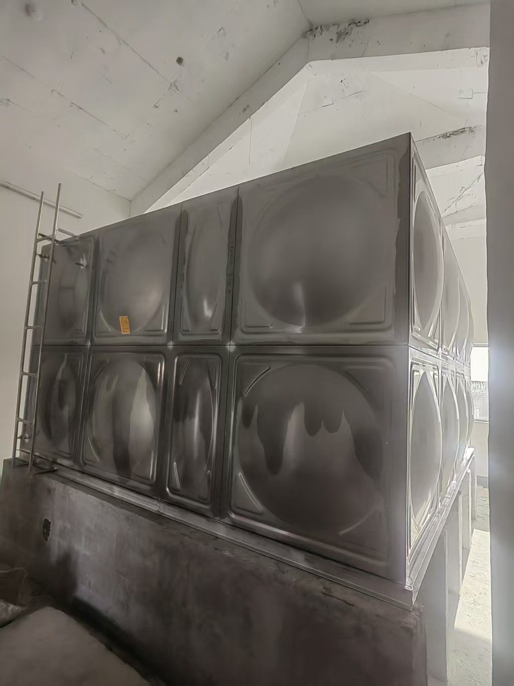 不銹鋼水箱設置會將水滴上的露珠集中在水箱上,然后流到排水的地方,這樣可以防止槽鋼濕潤且不生銹。
